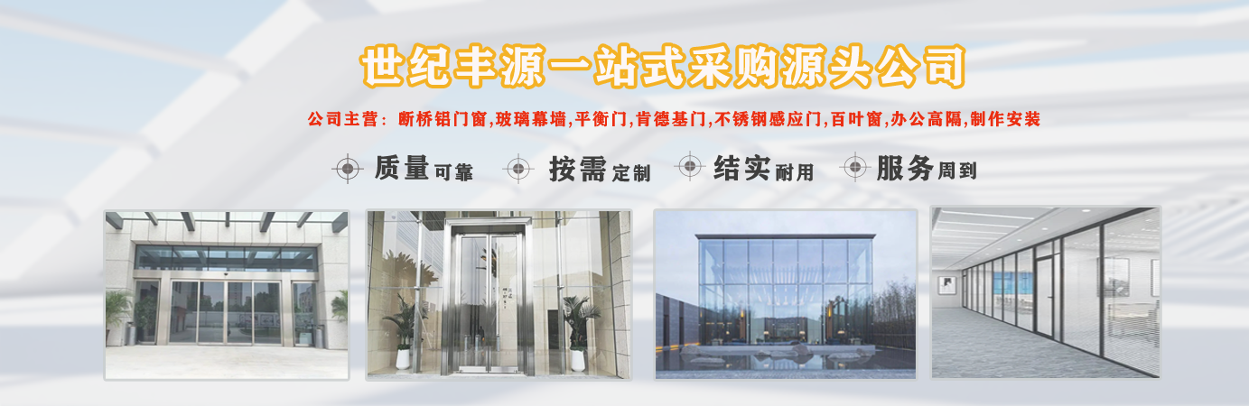 天津世紀(jì)豐源門窗有限公司從事斷橋鋁門窗,玻璃幕墻,平衡門,肯德基門,不銹鋼感應(yīng)門,百葉窗,辦公高隔,制作安裝一站式訂制生產(chǎn)及配套服務(wù)等。  公司自成立以來,始終堅(jiān)持以人才為本、誠信立業(yè)的經(jīng)營原則,薈萃業(yè)界精英,成熟的技術(shù)、管理方法及企業(yè)經(jīng)驗(yàn)與國內(nèi)企業(yè)的具體實(shí)際相結(jié)合,為企業(yè)供給各個(gè)方面的解決方案,使企業(yè)在激烈的市場競爭中始終堅(jiān)持競爭力,實(shí)現(xiàn)企業(yè)快速、穩(wěn)定地發(fā)展。  質(zhì)量好、服務(wù)好、才能信譽(yù)好,公司已在諸多領(lǐng)域取得輝煌成績,愿意成為您可信賴的長期合作伙伴。  讓我們攜手同行,共同實(shí)現(xiàn)“讓普通老百姓都用得上高端門窗”...